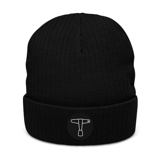 Drum Key Embroidered Ribbed Knit Beanie